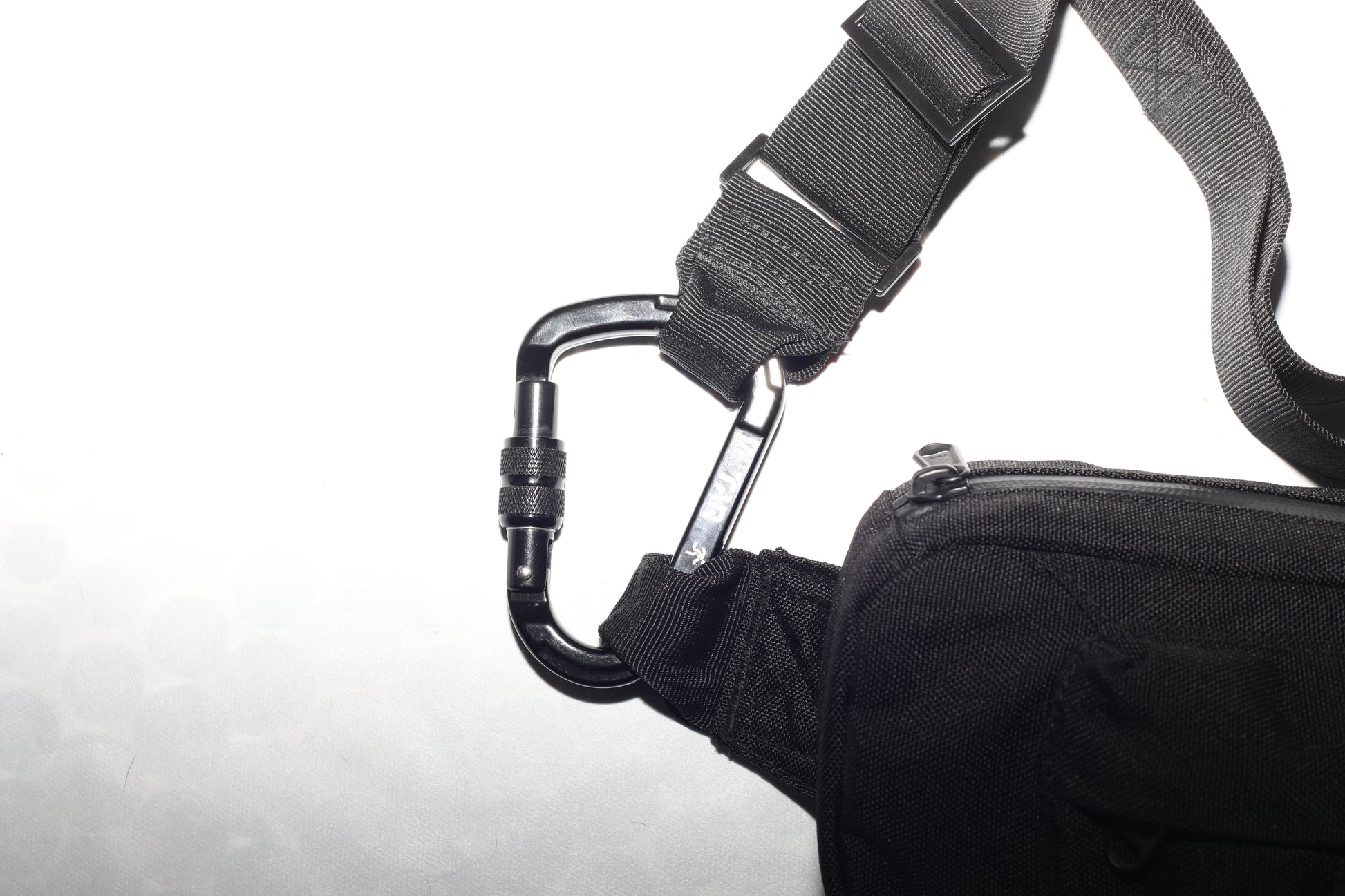 Heavy-duty hardware: reinforced swivel-lock carabiner holds heavy-duty adjustable nylon